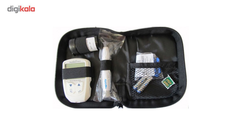 اقلام همراه : کیف نگهدارنده، 2 عدد باتری، نوار تست، سوزن، کارت گارانتی